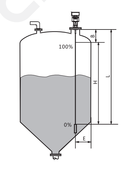 E----探頭到罐壁的最小距離